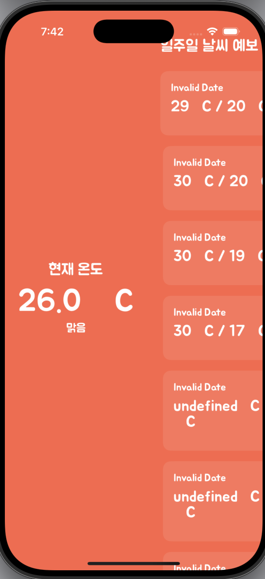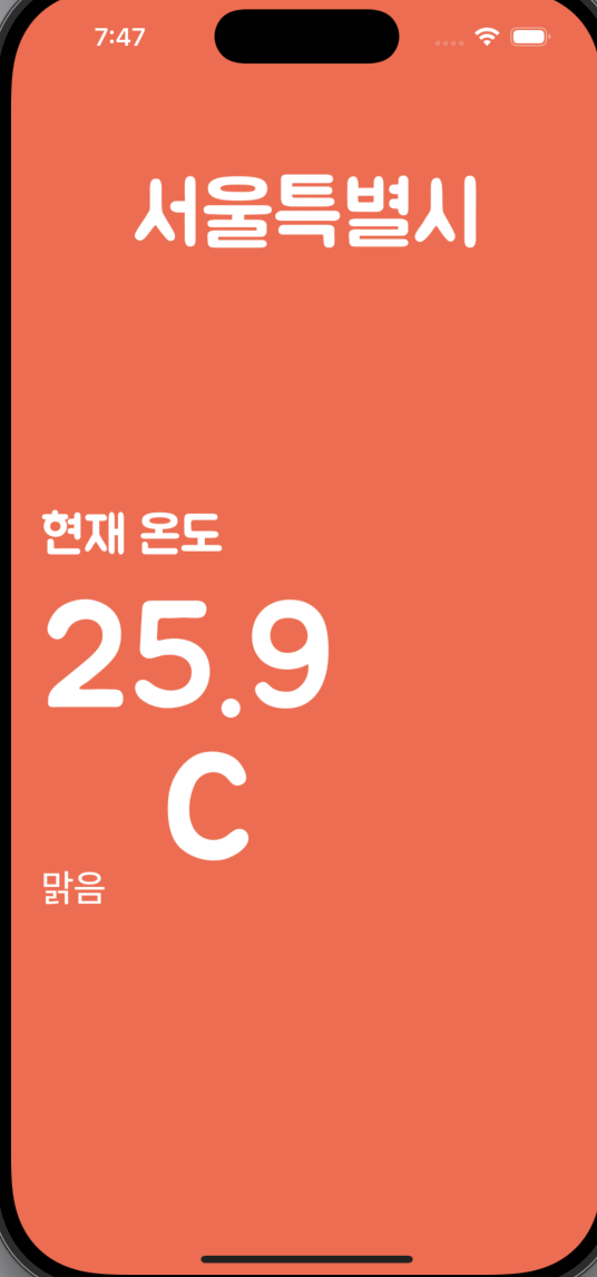 현재 위치를 기반으로 현재 날씨위치를 받아오고 일주일간의 날씨를 받아오는 어플이었다.