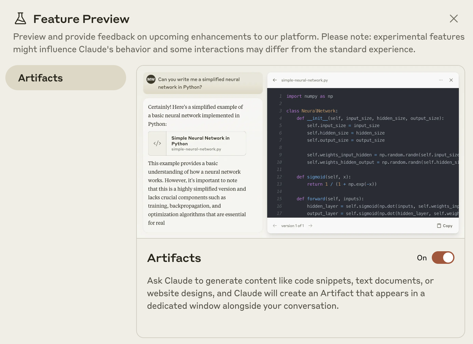 설정에서 Feature Preview 에서 아티팩트를 on 시키면 아래와 같은 기능을 볼 수 있다.