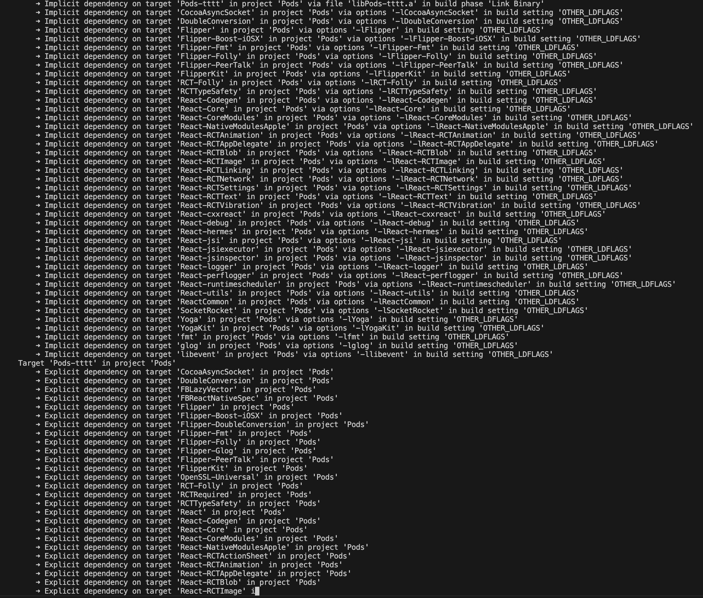 ➜ Implicit dependency on target 'React-runtimescheduler' in project 'Pods' via options '-lReact-runtimescheduler' in build setting 'OTHER_LDFLAGS'