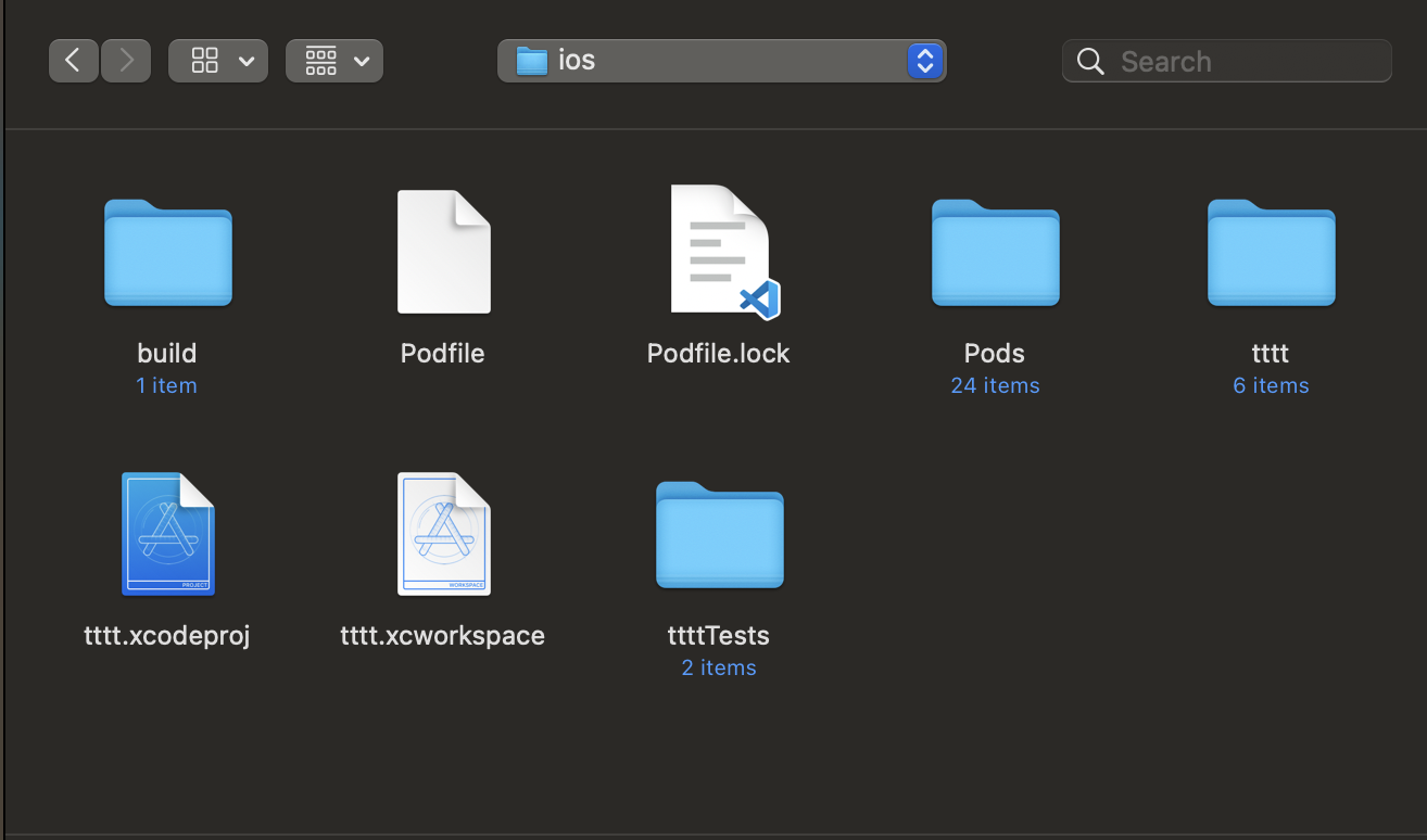 프로젝트의 ios 해당 폴더 위치로 열어준다.