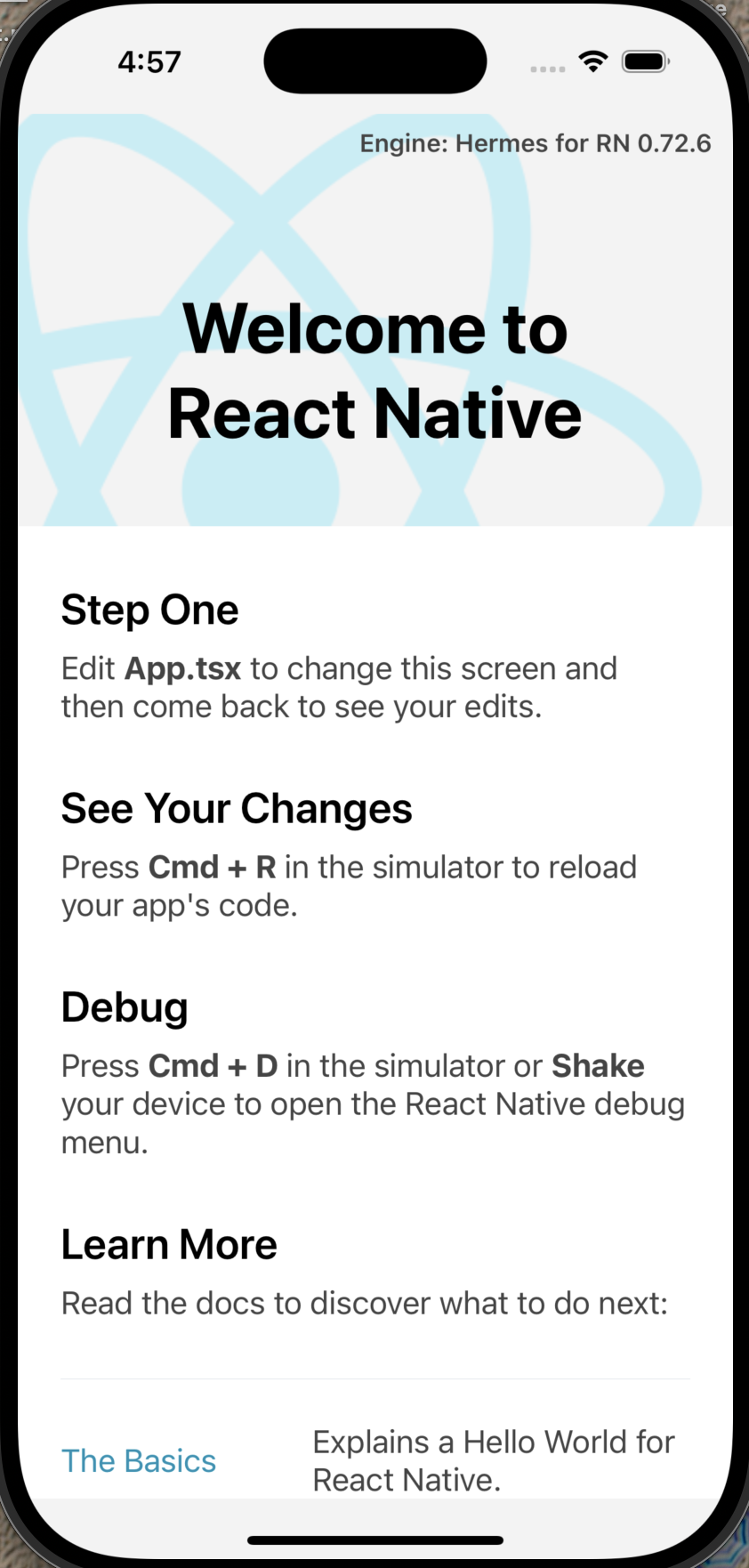 react-native 0.72.6 버젼을 다음과 같이 설치했다.